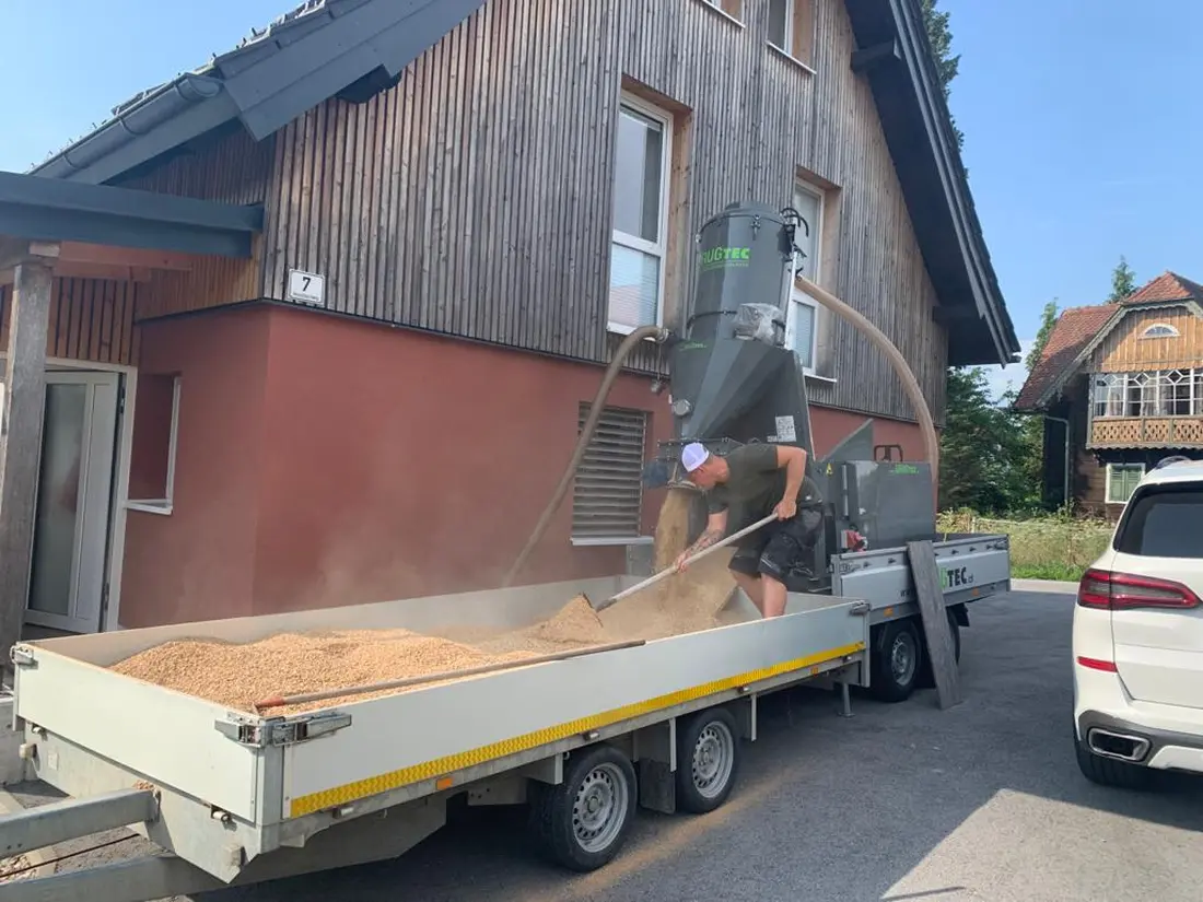 Für die Flachdachabsaugung bieten wir Ihnen unseren 11 kW VacTrailer an. Er entfernt zuverlässig Kies und andere Materialien und sorgt bei Neubauten wie auch Sanierungen für saubere Arbeitsflächen. Darüber hinaus eignet er sich zum Aussaugen von Pelletsbunkers, sei es für Wartungsarbeiten oder einen Brennstoffwechsel. Ebenso hervorragende Arbeit leistet er in Sandstrahlkabinen, um Strahlgut sicher zu entfernen und eine Wiederverwendung zu ermöglichen.